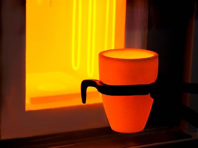 Die Legierungsbestandteile, für die jeweilige zu produzierende Karatzahl, werden bei ca. 1.200 – 1.300°C geschmolzen und zu einem Barren, den sogenannten Zain, ausgegossen.