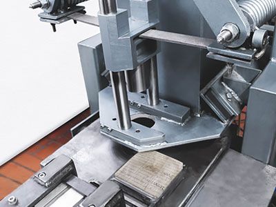 Das Lot wird in ein Kreuzband aus Rindsleder gesteckt und mechanisch unter einem Federhammer zu einer Grösse von ca. 160 x 160 mm ausgeschlagen.